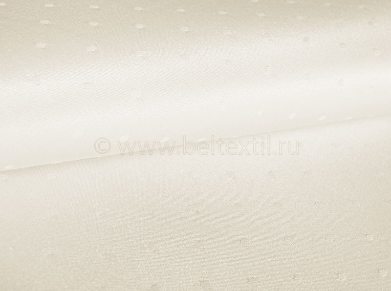 Однотонная ткань Мати для столового белья в мелкий рельефный горошек (точки) цвета "слоновая кость". Грязеотталкивающая пропитка обеспечивает более легкое очищение от пятен и длительную сохранность потребительских свойств. Плотность, оттенок и ткацкий рисунок ткани идеально подходит для пошива банкетного текстиля: скатертей, наперонов, юбок для столов, чехлов на стулья.