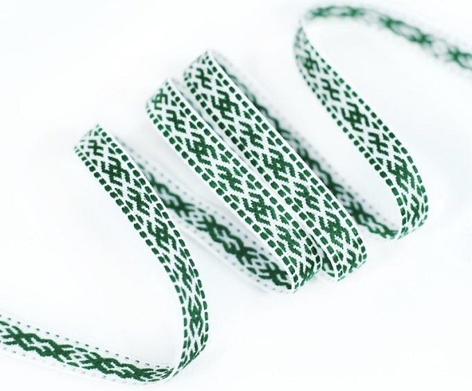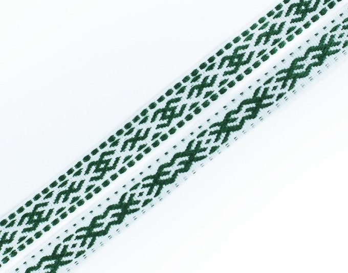 13мм. 91665/13 ЛЕНТА ОТДЕЛОЧНАЯ ЖАККАРД тем-зел.с белым*3092