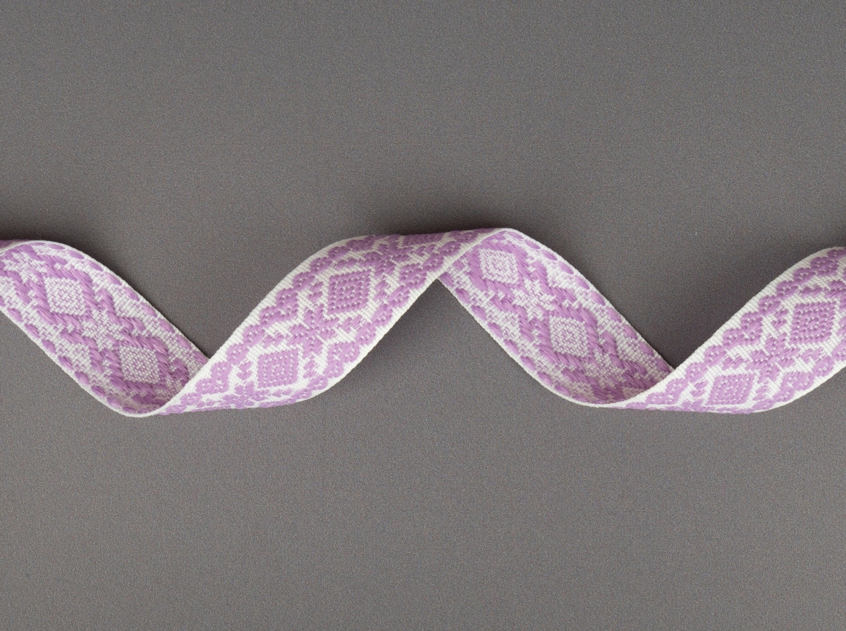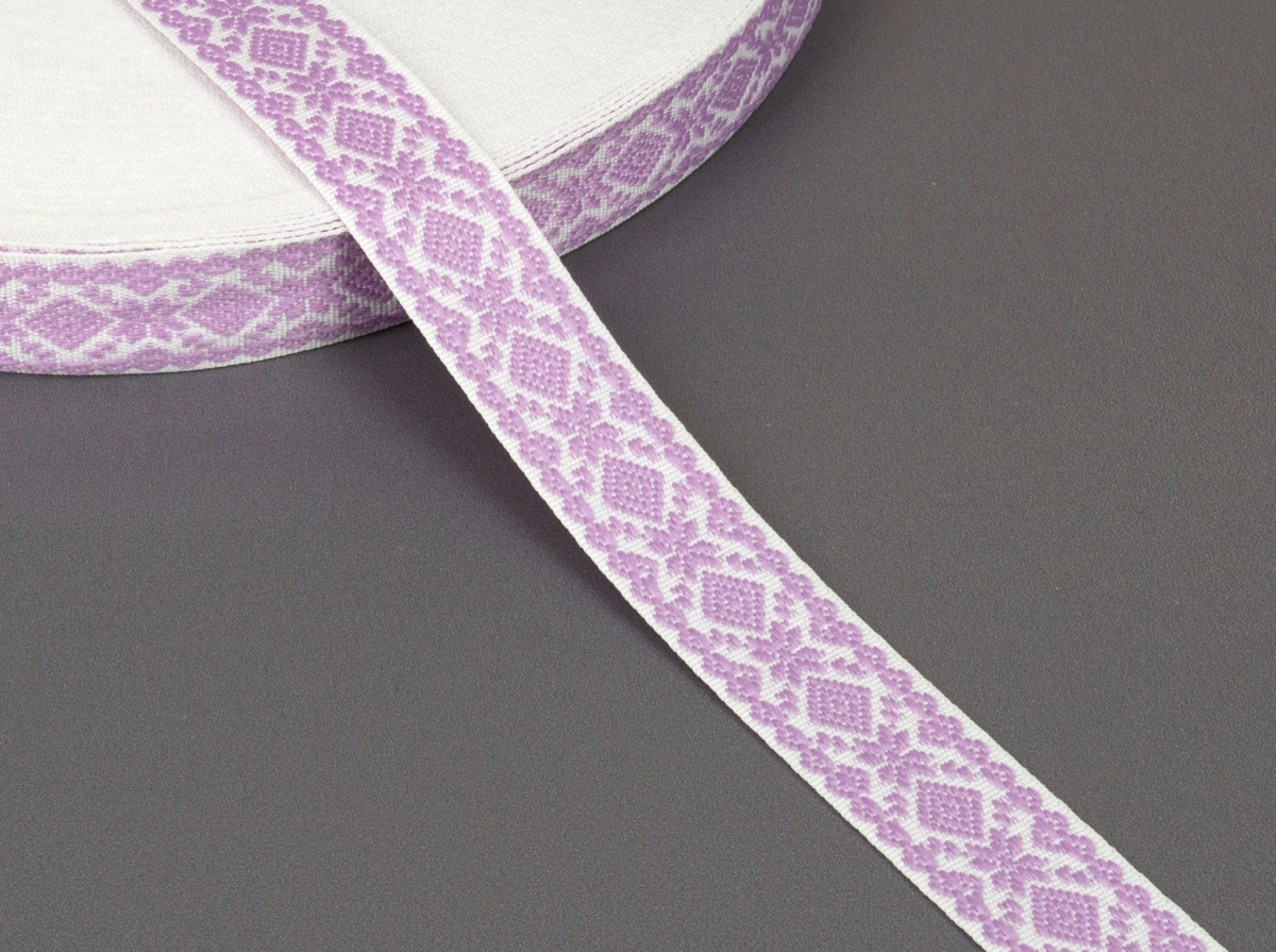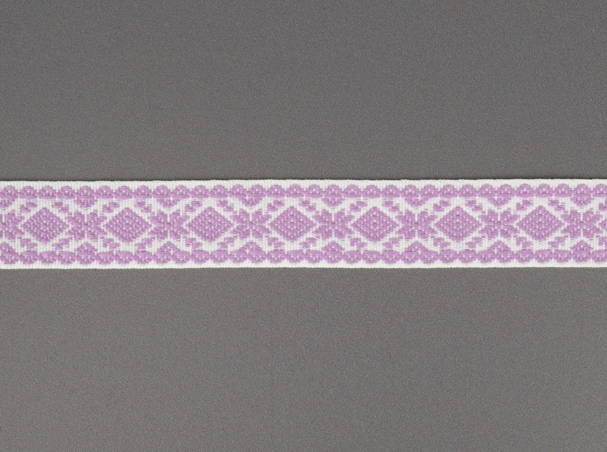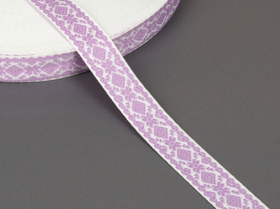 23мм. 9990 ЛЕНТА ОТДЕЛОЧНАЯ ЖАККАРД белый с сиреневым*3107