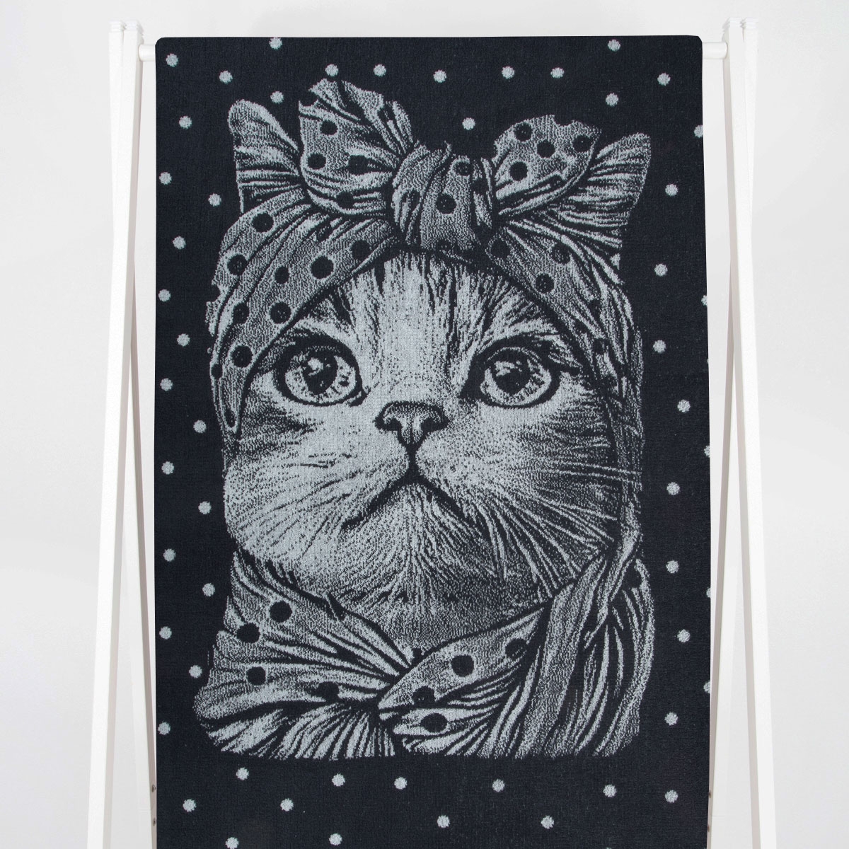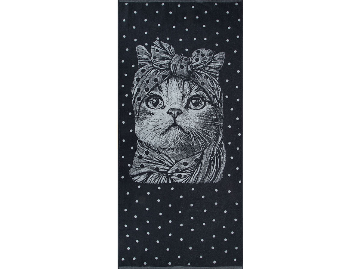 Полотенце махровое 6с102.411ж1 Кошка в горошек(антрацит) 67х150см