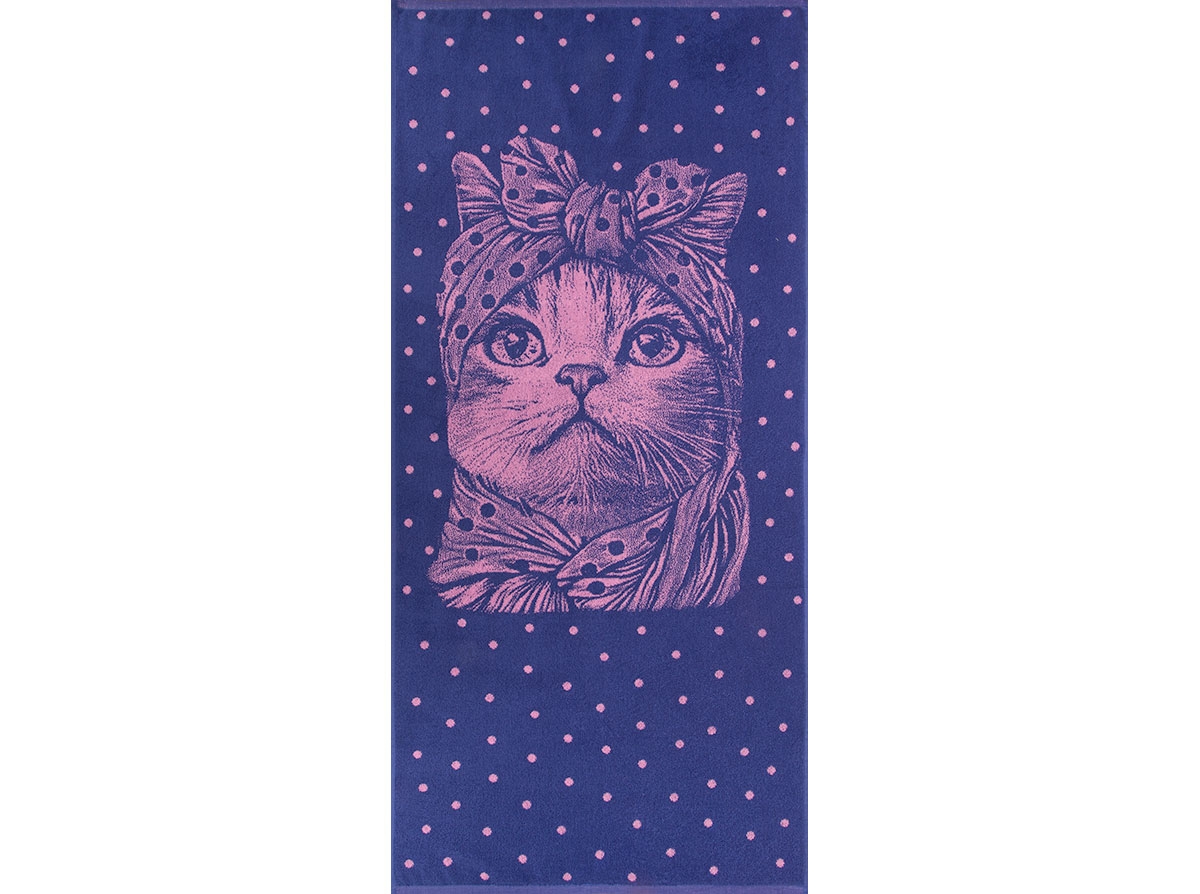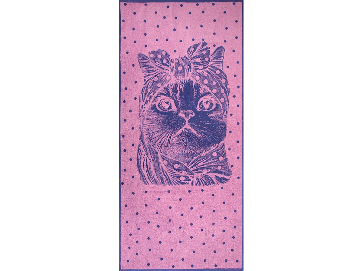 Полотенце махровое 6с102.411ж1 Кошка в горошек(пурпурн3) 67х150см