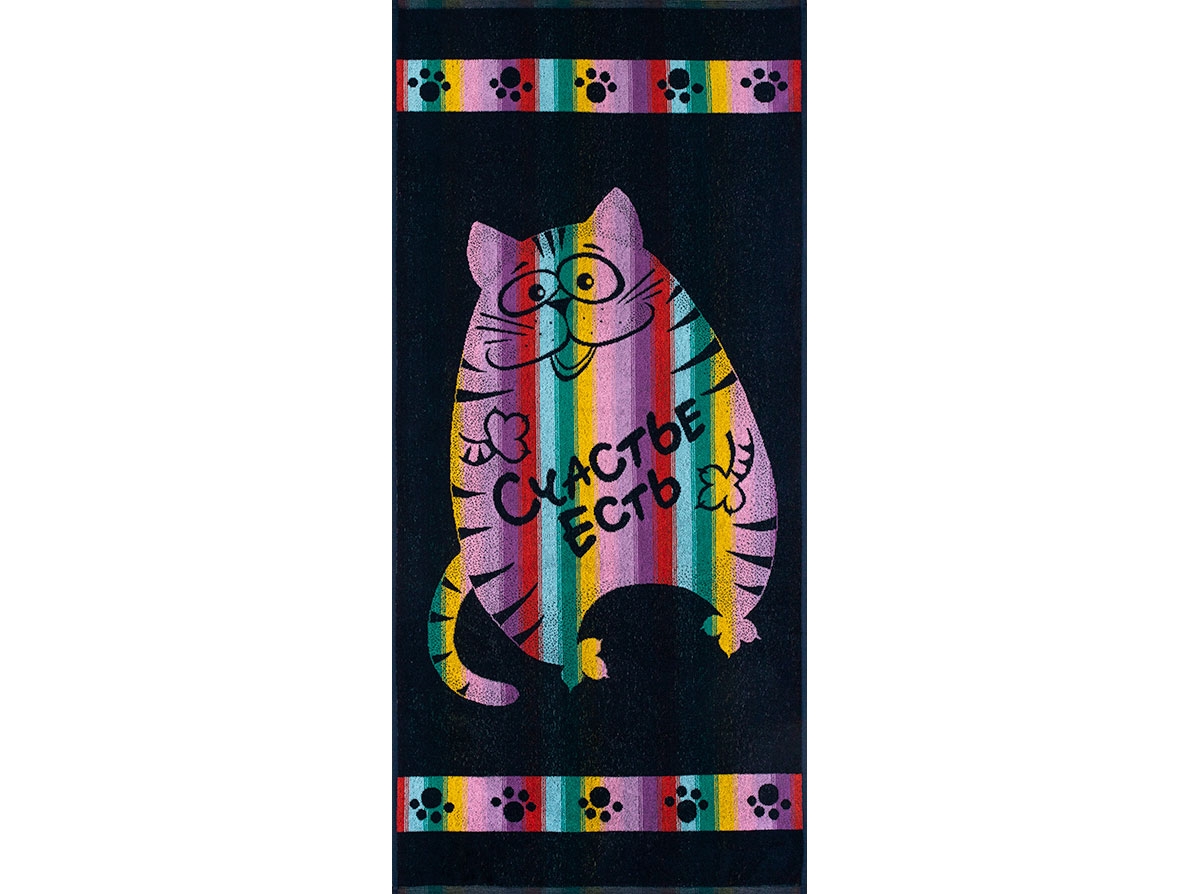 Полотенце махровое 6с102.411ж1 Счастье есть (темно-синяя радужка) 67х150см