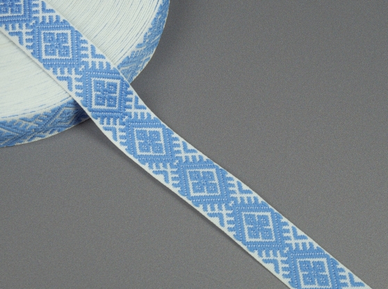 20мм. 90135 ЛЕНТА ОТДЕЛОЧНАЯ ЖАККАРД белый с голубым 20мм (рул.25м)