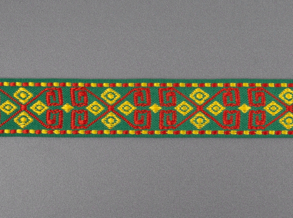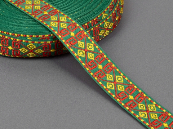 26мм. 91618/26 ЛЕНТА ОТДЕЛОЧНАЯ ЖАККАРДОВАЯ зел.жел.крас*3093