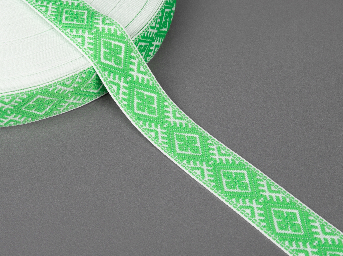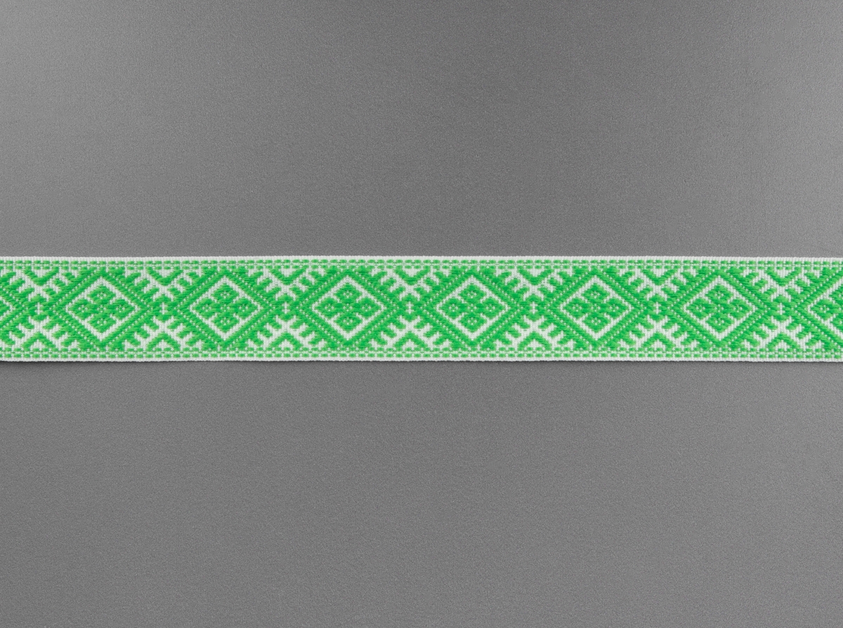 25мм. 9904 ЛЕНТА ОТДЕЛОЧНАЯ ЖАККАРД белый с салатовым*094