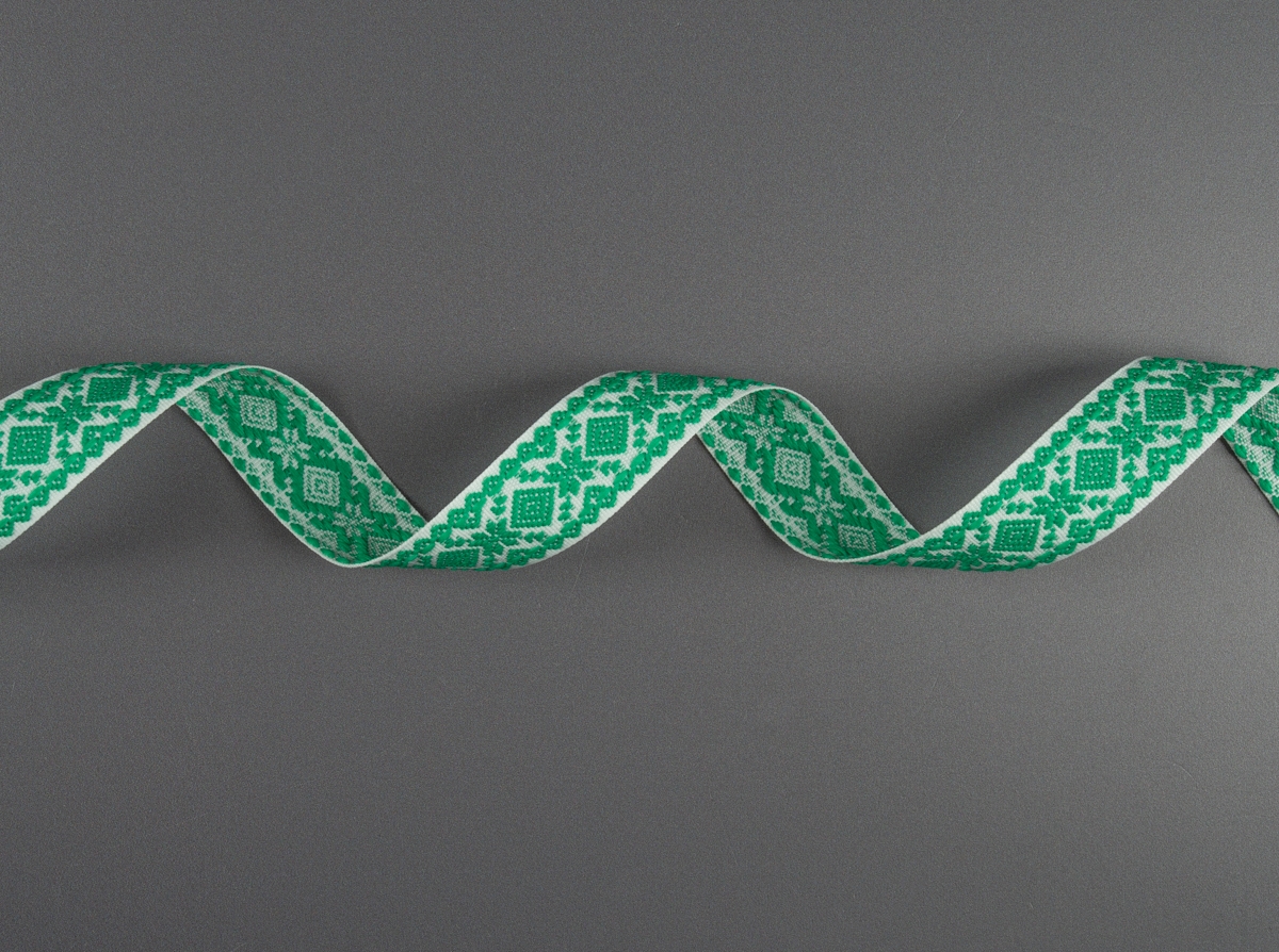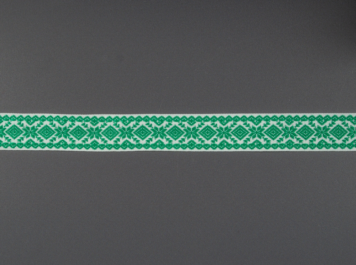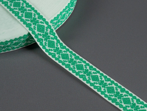 23мм. 9990 ЛЕНТА ОТДЕЛОЧНАЯ ЖАККАРД белый с зелёным св.*061