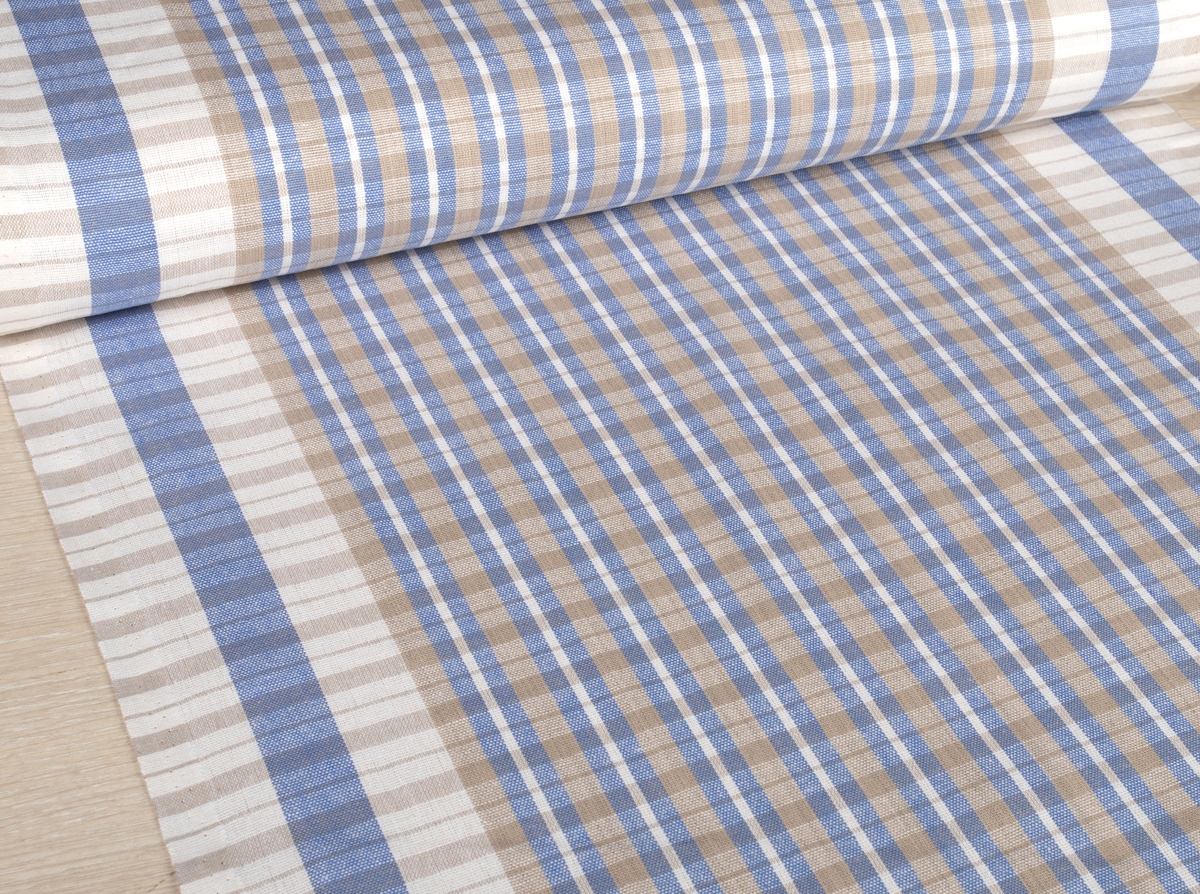 Холст полотенечный п/л пестр.арт.113358 Клетка голубой/натуральный 3*35/98