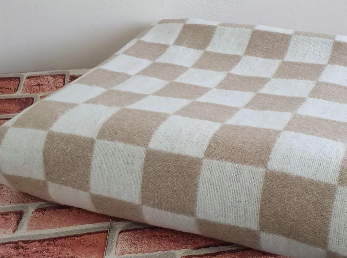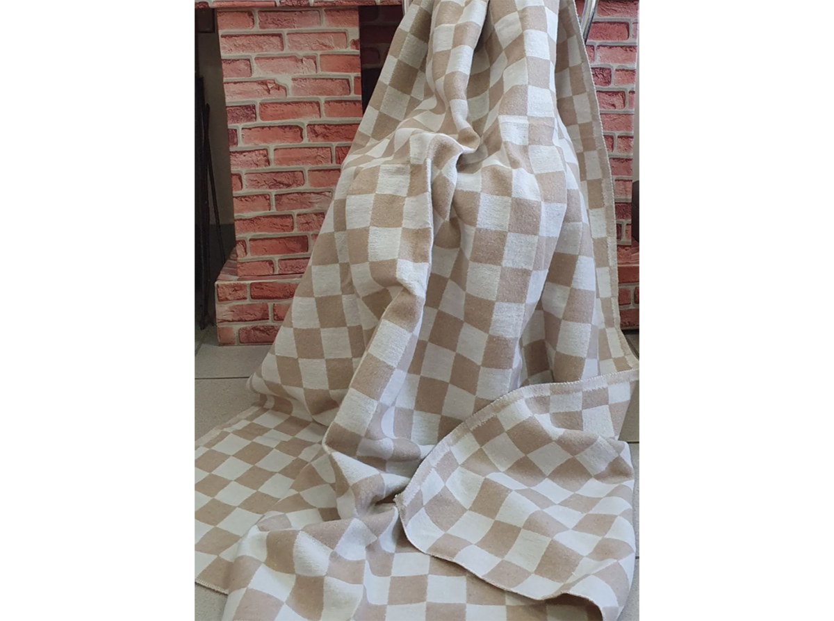 Одеяло байковое 140*205 клетка цв. бежевый (Россия ВВТ)