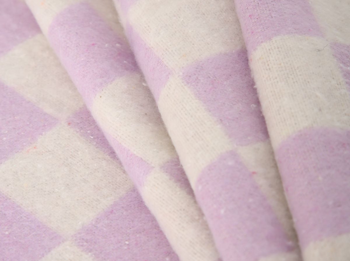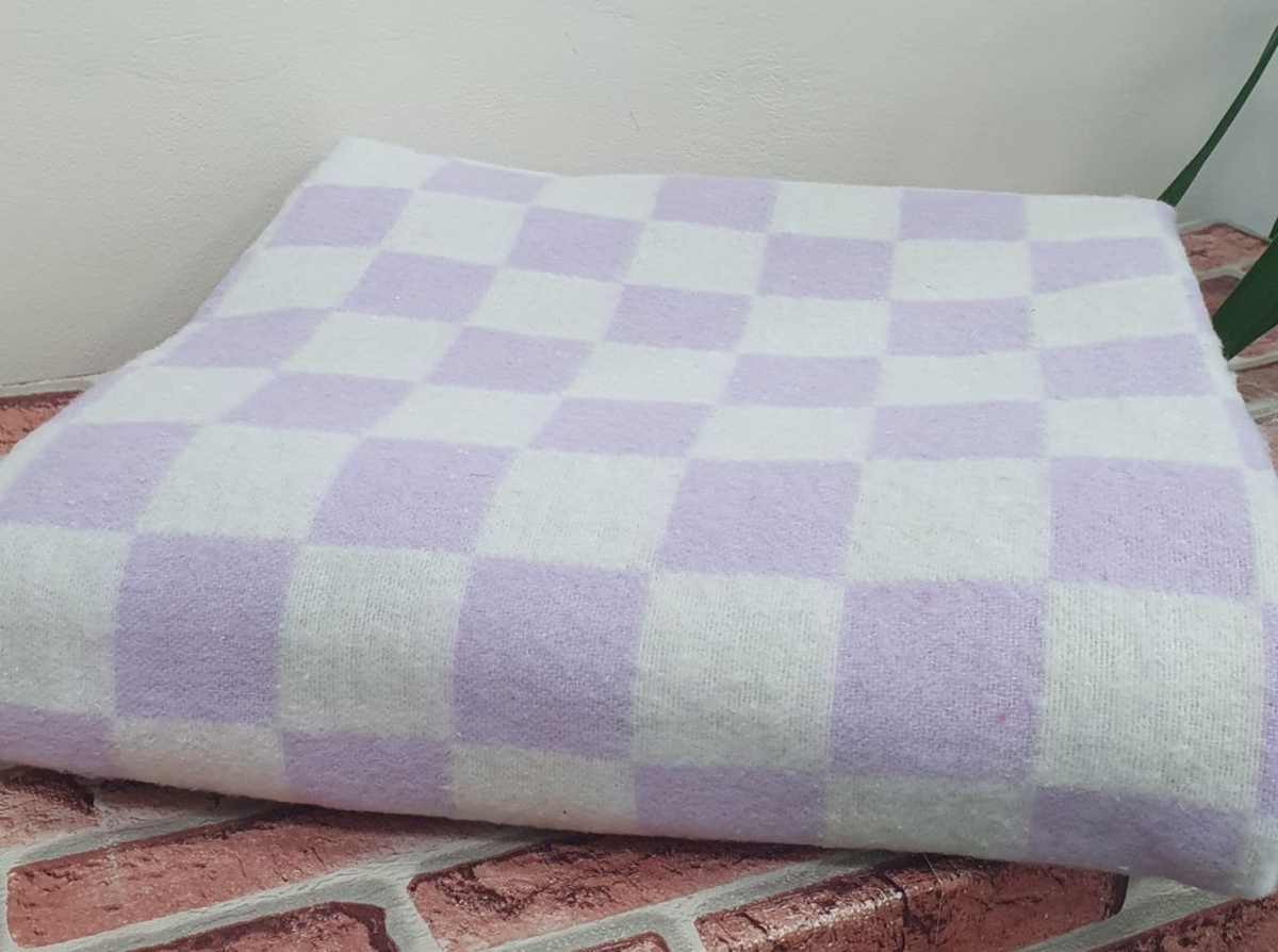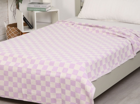 Одеяло байковое 140*205 клетка цв. сирень (Россия ВВТ)