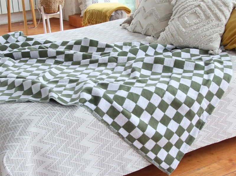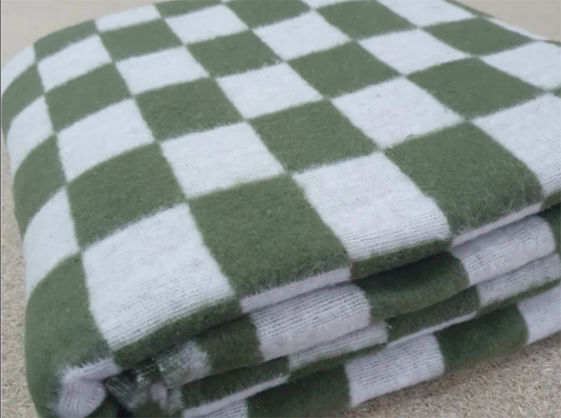 Одеяло байковое 170*200 клетка цв. хаки (Россия)