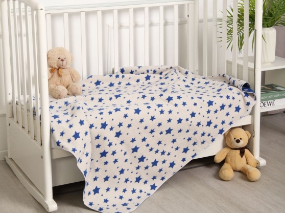 Одеяло байковое жаккардовое в/уп 100*140 цв синий (звезды) (Россия ВВТ)