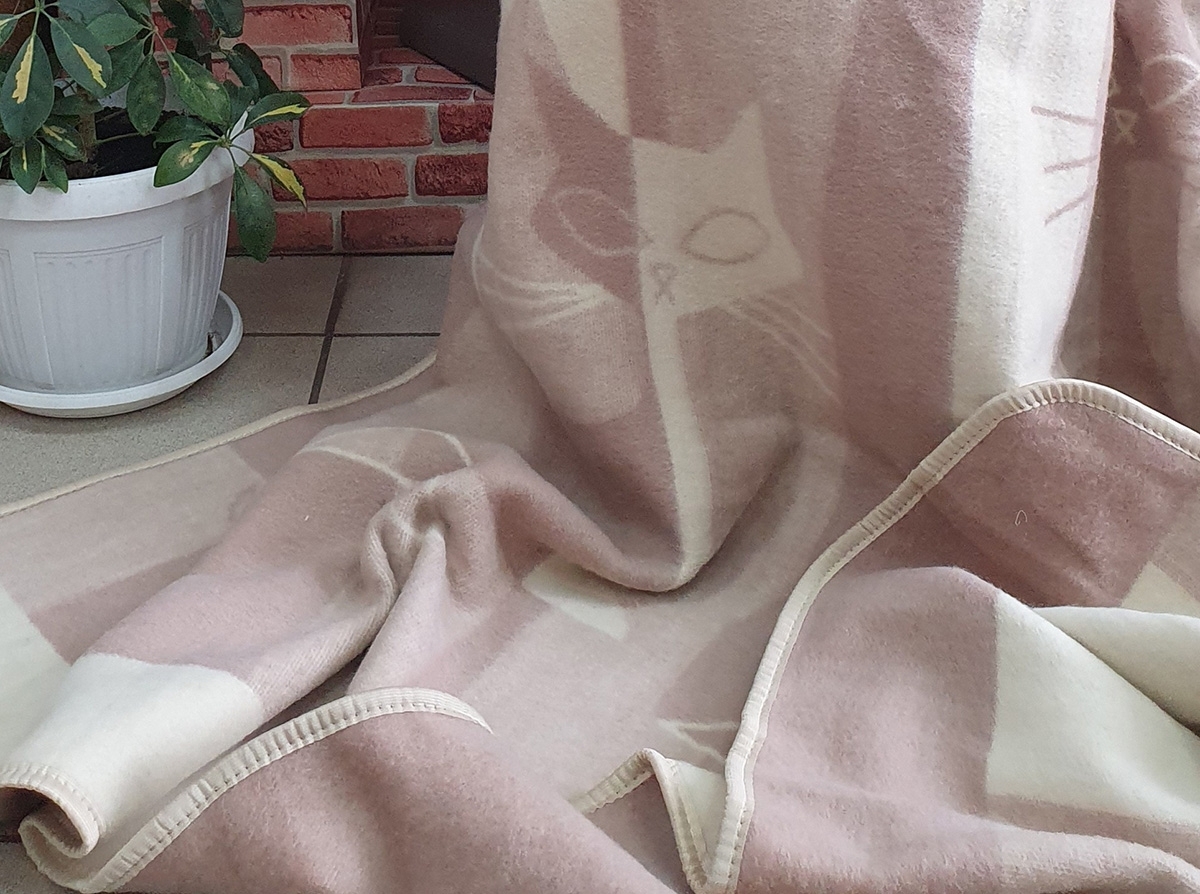 Одеяло шерсть мериноса 100% 130*205 "Кошки" цв бежевый (Узбекистан)
