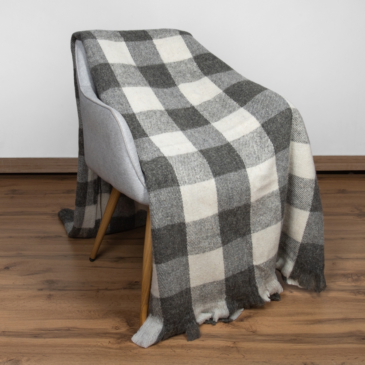 Плед п/шерсть 50% ОП-400 140*200 клетка цв. серый (Россия