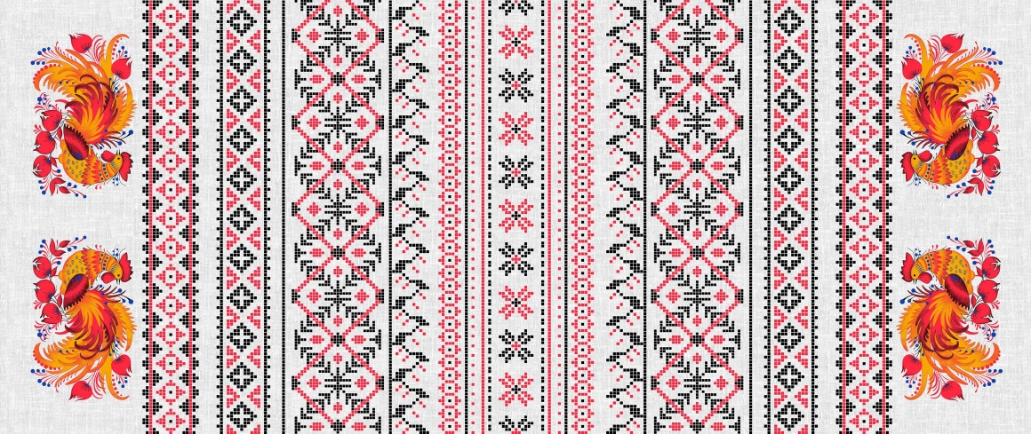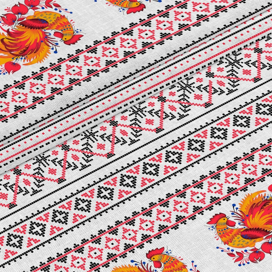 Рогожка набивная НКЛМ рис. 2382/1 Вышивка Петухи