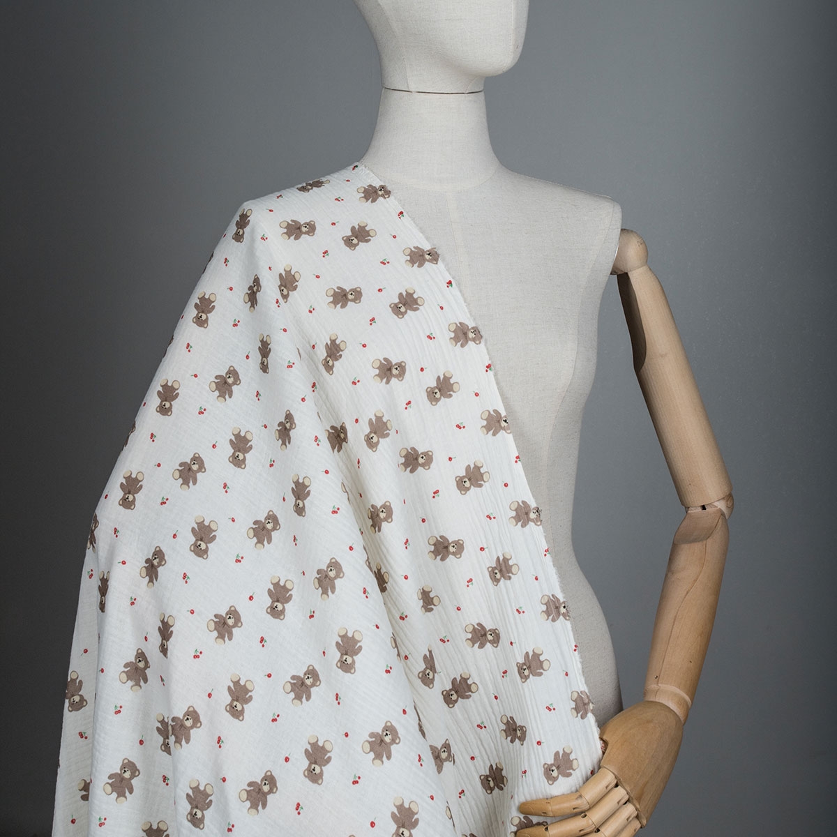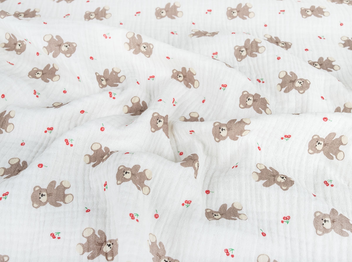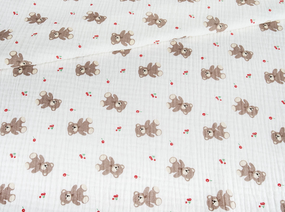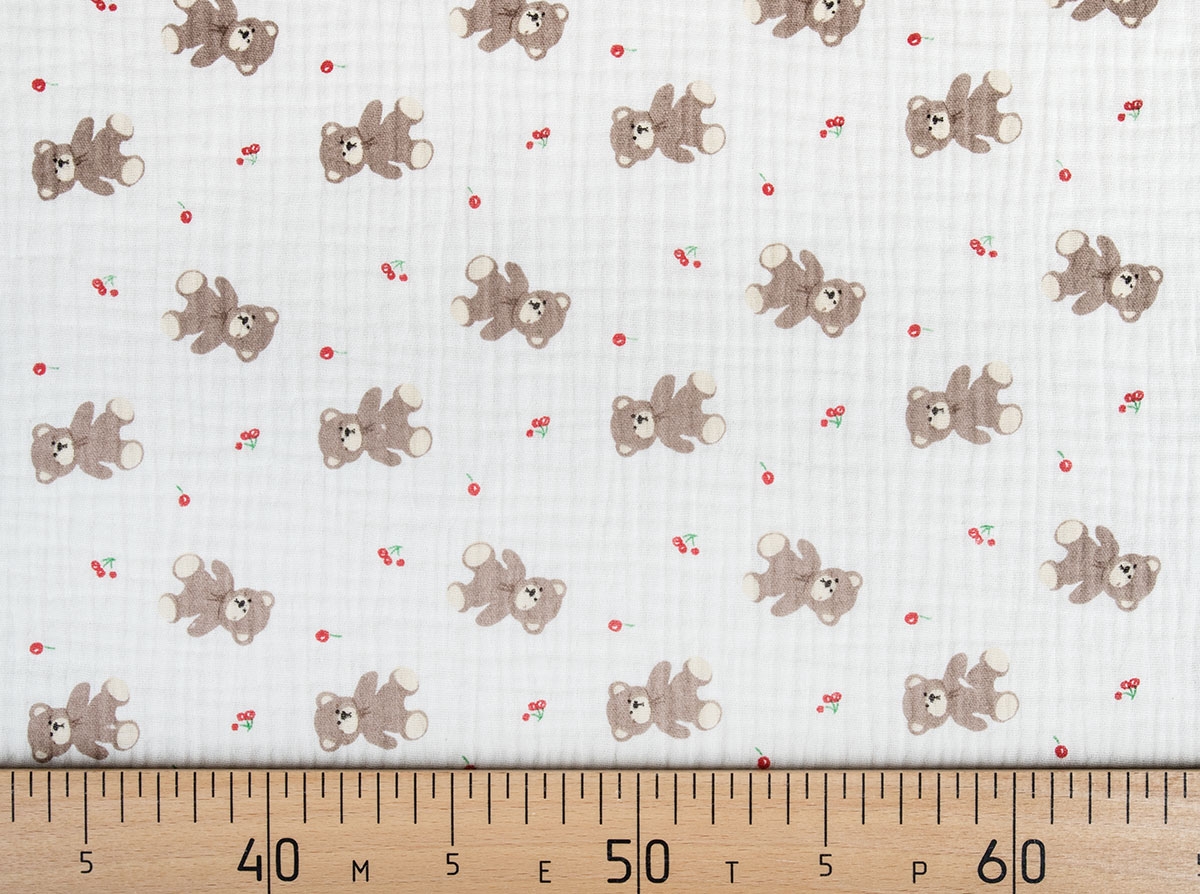 Ткань 12206/D9(4017) Принт Муслин Мишка Бежевый