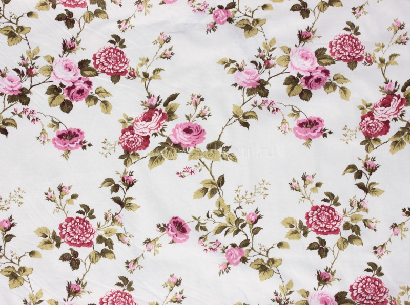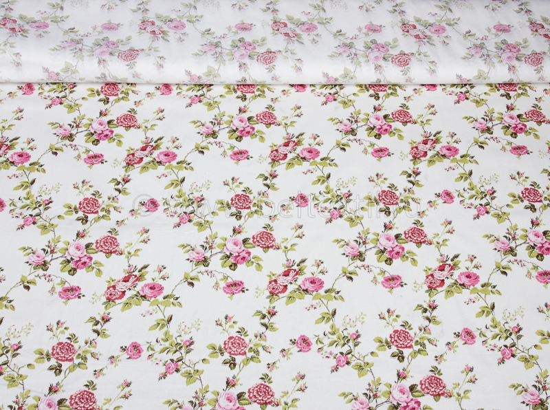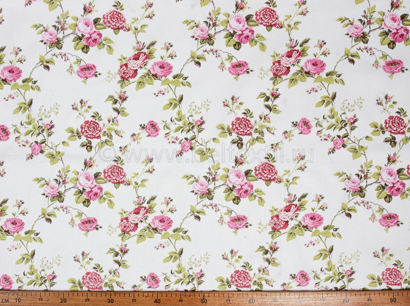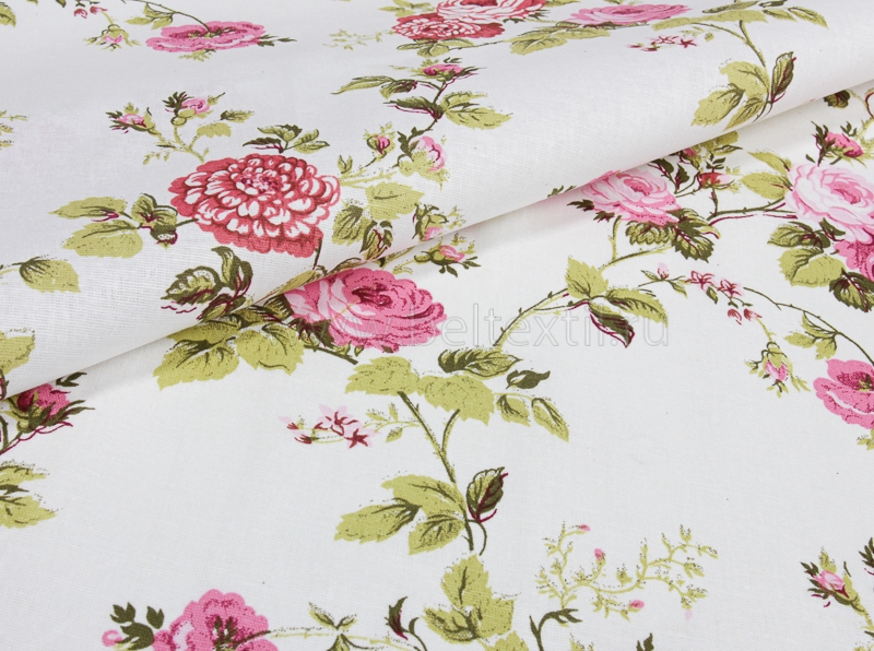 Ткань бельевая 17с-1ЯК п/лен набивной рис. Роза прованс на белом