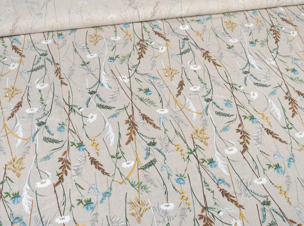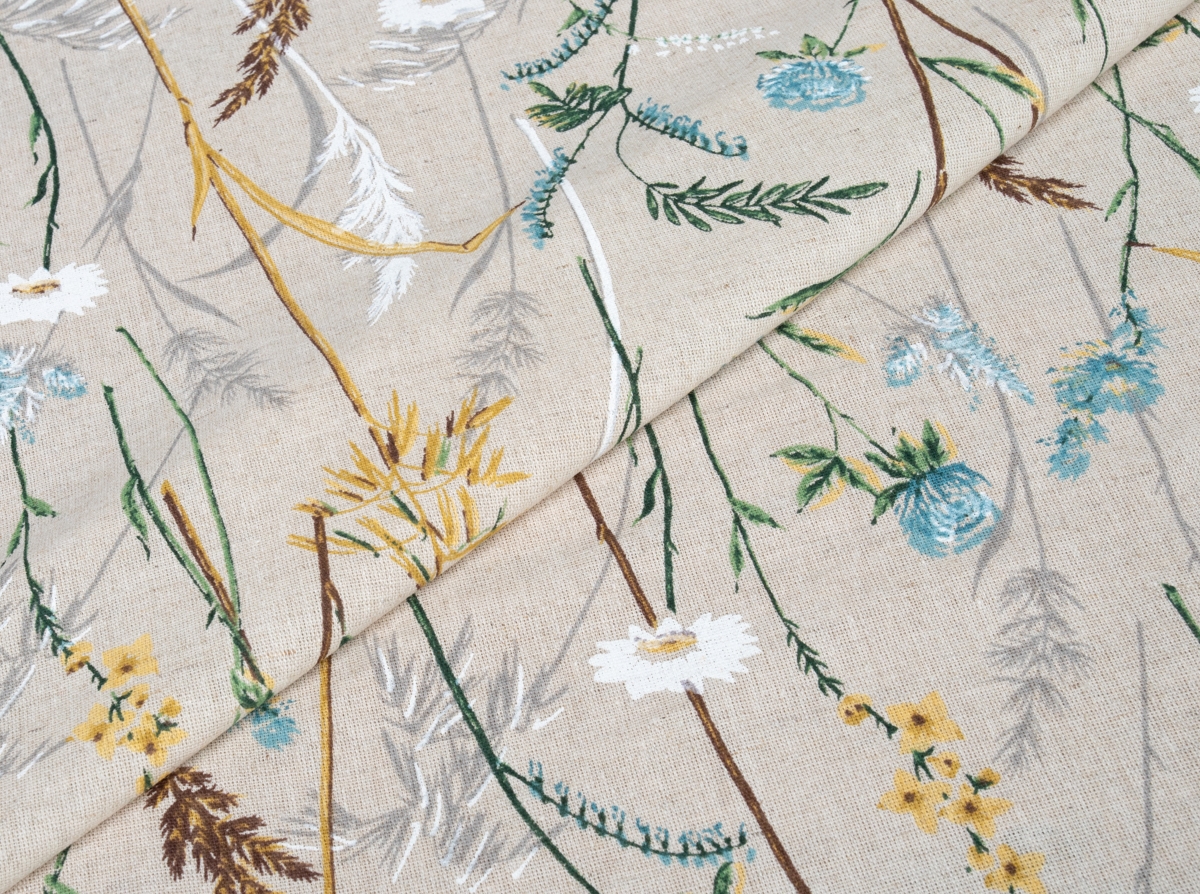 Ткань бельевая арт 2-21 п/лен кислованный лен 30 хл.70 пл. 140г рис. Полевая ромашка